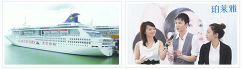 2009年12月22日至26日,借助浓郁的圣诞节氛围,珀莱雅携手全国五十余家时尚主流媒体及品牌部分经销商,共赴新加坡登上了丽星处女星号邮轮,共同体验了一场浪漫且神奇的“珀莱雅探寻海洋肌密之旅”。