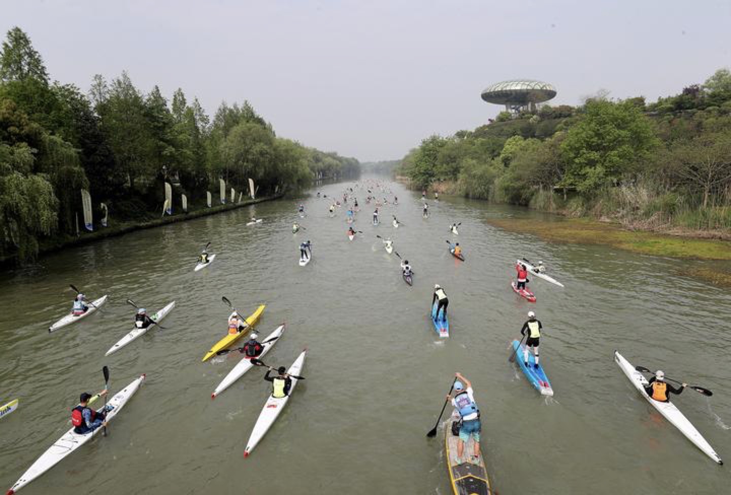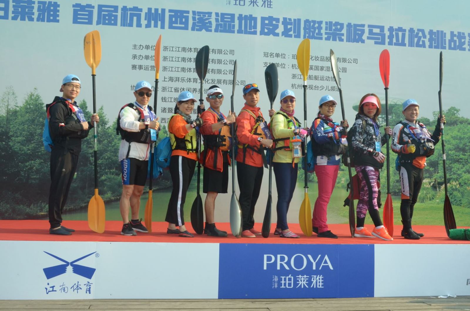 珀莱雅首届杭州西溪湿地皮划艇桨板马拉松挑战赛分全马组(42公里)、半马组(21公里)、SUP桨板半马组(21公里)三项专业竞技赛事项目。当天共259条皮划艇,138块桨板参加挑战,运动员总计男子组297名选手、女子组100名选手,都是来自全国各地的皮划艇爱好者。本届比赛从坐落在西溪天堂栖悦城的“西溪湿地江南体育水上运动中心”出发,一路经过绿堤、朝天暮漾、莲花滩等水域,运动员在比赛的同时,还可以欣赏到西溪质朴的自然景观、深厚的人文积淀和丰富的生态资源。