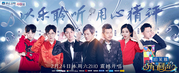 在粉丝们的翘首期待下,由珀莱雅独家冠名,浙江卫视出品的大型音乐猜评推理节目《异口同声》已正式开播。这一季采用全新模式,在邀请乐坛代表性歌手讲述金曲背后故事的同时,也邀请到经过严格甄选及专业培训的模唱歌手,用他们以假乱真的声线向专业猜评团发起挑战,同时也向原唱歌手和时代金曲致敬。节目将由原唱歌手与三位模唱歌手在竞演门内演唱同一首歌,由观众和猜评团成员投票选出谁才是原唱。除了参与节目的歌手外,节目的猜评团也阵容强大,由歌手张宇、音乐制作人黄国伦、段子手刘维、选秀新星魏巡、鬼马主持人马松、人气主播冯提莫组成。